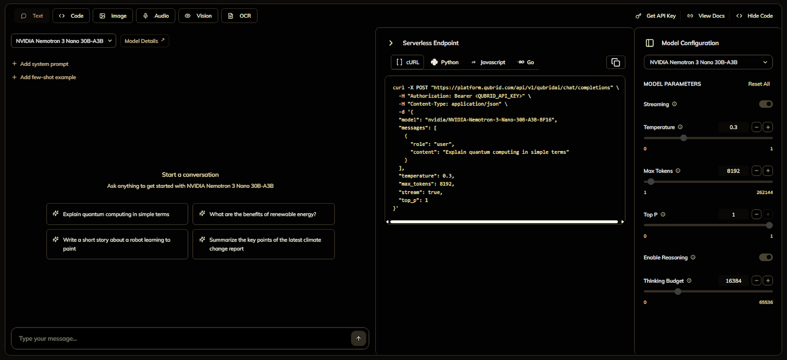 If you want to run NVIDIA Nemotron 3 Nano 30B-A3B in production, Qubrid AI is the easiest and fastest way.